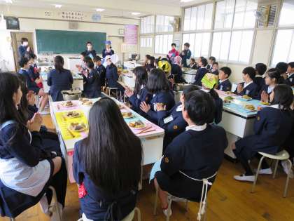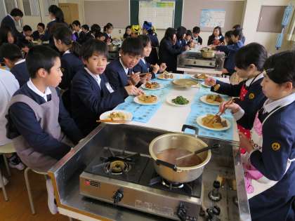 今日は、6年生がおでんを作り5年生を招待して一緒に食べました。6年生が作ったランチョンマットには、5年生への励ましの言葉や感謝の気持ちが書かれてありました。嬉しいですね。おいしいおでんにみんな感激(*^_^*)でした。