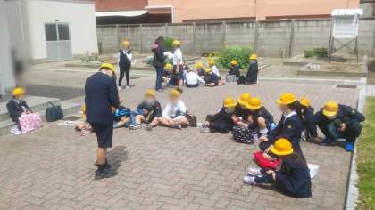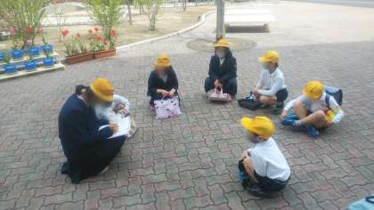 新型コロナウイルス感染症拡大防止対策として、本年度も教室ではなく中庭で行いました。