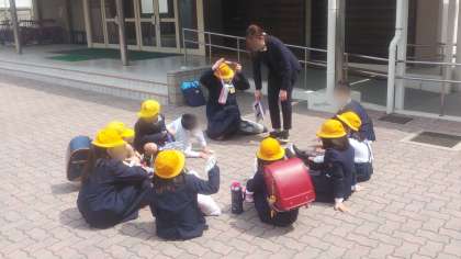 新1年生を迎えて、集合場所や集合時刻などを少し距離を取りながら、登校班で再確認
