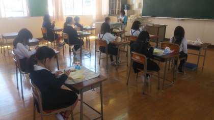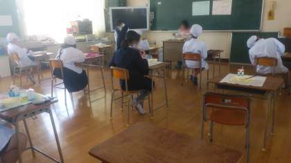 人数の多い3年生と5年生は習熟度教室を使って2つの教室に分かれて食べることになりました。