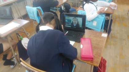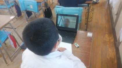 画面に映し出された自分の写真を見ながら、自画像を描きました。