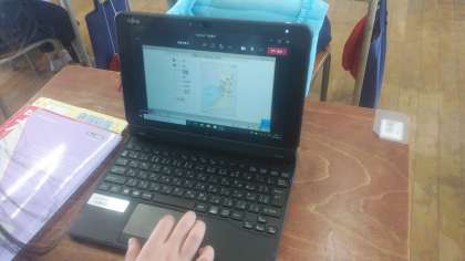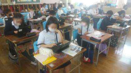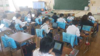 大型モニタでは見づらい細かなところも画面共有で一人一人のタブレットに映し出すことでモニタから遠い席の児童にもしっかりと見ることができるようになりました。
