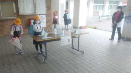 玄関に入ると各自しっかりと手の消毒