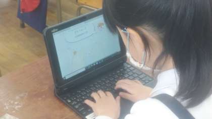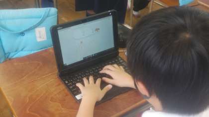 4年生の教室をのぞいてみると、すき間時間を使ってタイピングの練習をしていました。