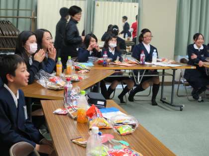 6年生は茶話会を行いました。6年間共に過ごしてきた友だちとグループで出し物をしあったり、会食をして楽しい時間を過ごしました。みんな心からの笑顔でしたね。
