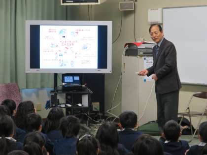 今日は、e−ネットキャラバンからゲストティーチャーをお迎えし、4・5・6年生にe−net安心講座を行いました。携帯電話やスマートフォン、パソコンを使ってインターネットなどを安全に使えるように、またインターネット犯罪の怖さなどを映像を交えて教えていただきました。犯罪に巻き込まれないためにご家庭でも使い方のルールを決めるなど、ご協力をお願いいたします。