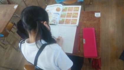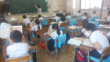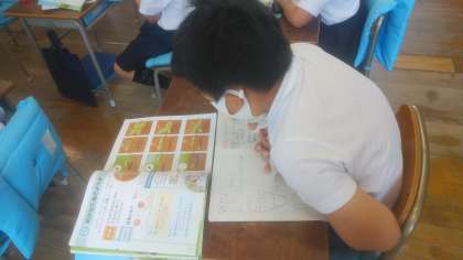 教科書の写真を見ながら子葉と本葉のちがいについて学習しました。