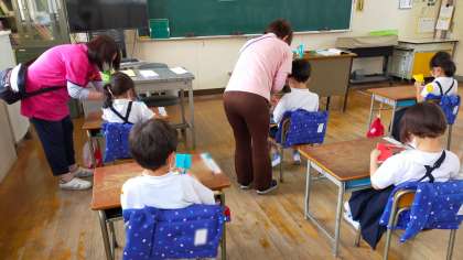 はさみの使い方に注意しながらみんな真剣にかざりづくりに挑戦