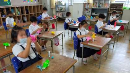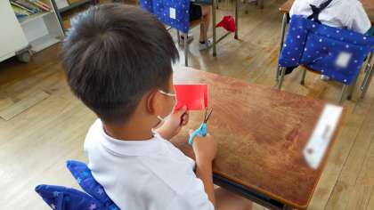1年生の図画工作ははさみを使った七夕のかざりづくり