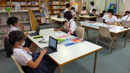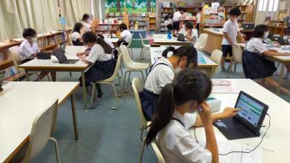 ポスターや書籍、インターネットを活用し、ヒトの誕生のふしぎについて調べ学習を図書室で行いました。