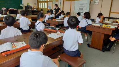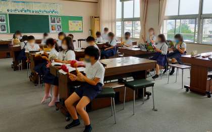 ギロやマラカスなどの打楽器を使ってみんなで演奏していました。
