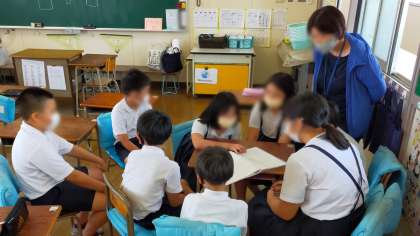 集団登校の班で集まり、1学期のふり返りを行いました。
