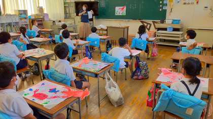 背景画はそれだけでもとってもきれいに描けていましたが、ザリガニを置くことでさらに躍動感が現れた絵になりました。