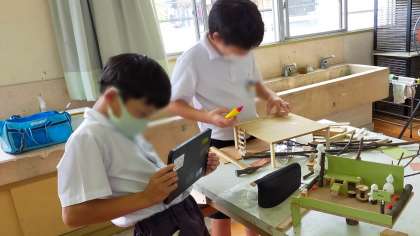 子どもたちは作品作りをしながら、メイキングに使う素材として写真撮影も行っていました。