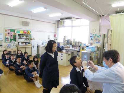 今日は、歯科校医先生による歯科検診がありました。どの学年も静かに自分の順番を待ち、受診できました。学校では、給食後の歯みがきに取り組んでいます。歯ブラシとコップのご協力ありがとうございます。