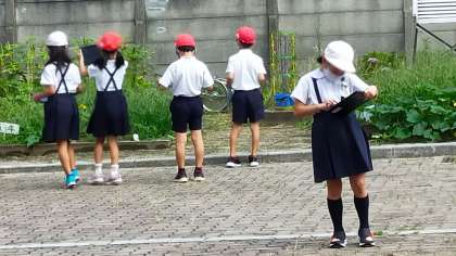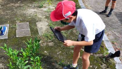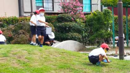 虫クイズづくりのため中庭に隠れている虫探しをしました。