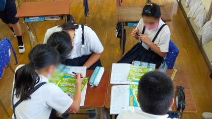 6年生の教室をのぞいてみたら、グループで集まって鳥羽水族館での自由行動の計画を立てました。