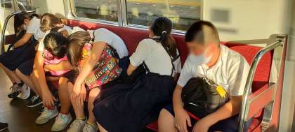 たくさん遊んだので、ホテルまでの道中で少し休憩です(^^)