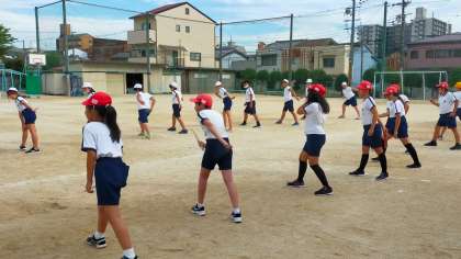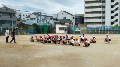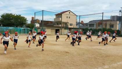 ルールを守りながら、5年生が運動会に向けてリレーの練習を行っていました。