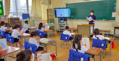 1年生の教室に行って声をかけたら、みんなよい姿勢に早変わり!