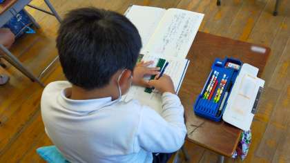 「何ページの何行目」と言われただけではなく、視覚的にも見つけやすいように工夫された授業でした。