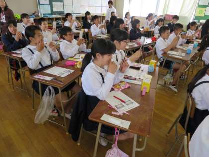 学校歯科医の先生と教育委員会の先生をゲストティーチャーにお迎えし、歯と口の健康について学習しました。自分の歯肉の状態を観察したり、チェックシートを基に自分の健康度を調べました。ありがとうございました。