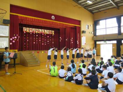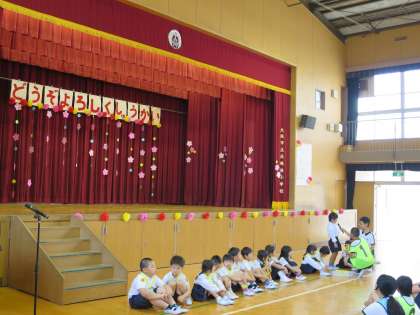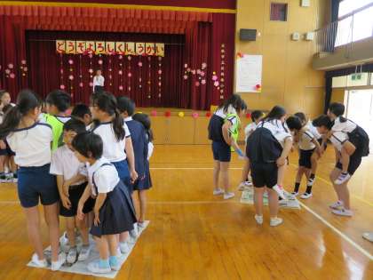 昨日から、たてわり班での活動が始まりました。早速1時間目に1年生を迎える「どうぞよろしく集会」を行いました。1年生一人一人にインタビューをしたり、班対抗でふれあいゲームをしたり、班ごとに班のめあてを発表したりしました。今日から1年間なかよくがんばりましょう!