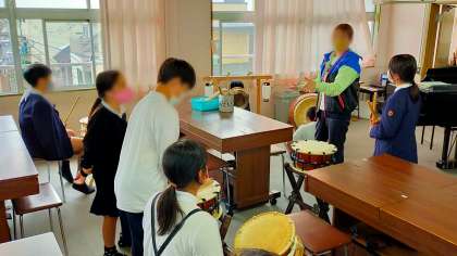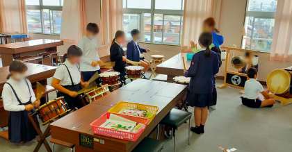地域の青年会の方々から教えていただいたことを基に、発表会に向けて6年生の児童がだんじり囃子の練習を始めました。