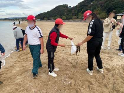 それぞれ砂で山を作ったり、綺麗な貝殻を探したり、友達とのひとときを楽しく過ごしていました。