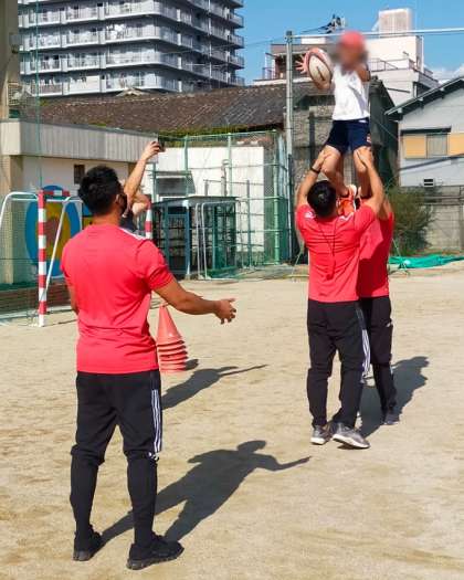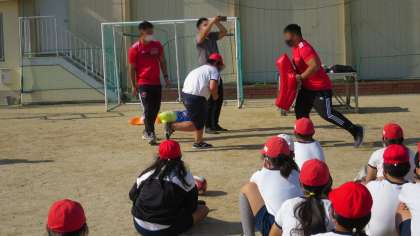みんなで体験した後は代表者が選手相手に本物のすごさを体験