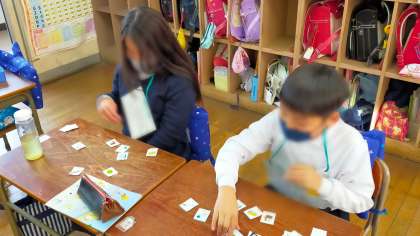 C-NETの先生の発音をよく聞き、カードを取ります。