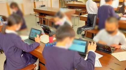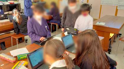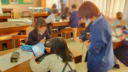 タブレット端末を使い、給食に関係する資料作りを行いました