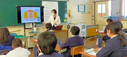 子どもたちは自分たちが一生懸命取り組んできたこともあって、みんな真剣な表情で区長さんのお話に聞き入っていました。