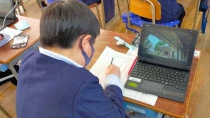 一人一人で見ることができるから、一時停止してメモを取ったり、気になる部分を繰り返し見ている児童もいました。