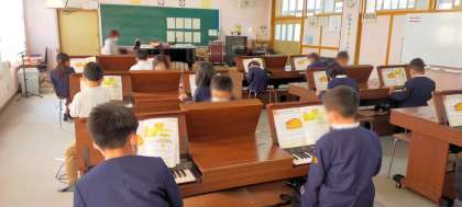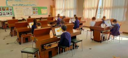 いつもは教室で鍵盤ハーモニカを使っている音楽