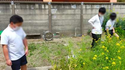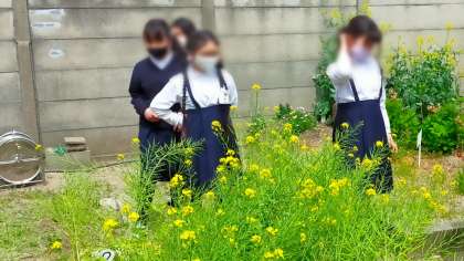 理科の時間に学習園で菜の花の観察を行いました。