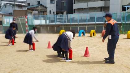 避難訓練の後は防災訓練