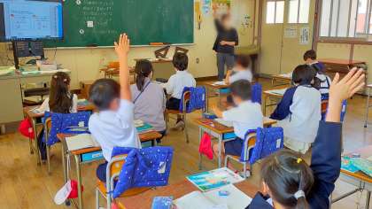 元気に手をあげて発表!