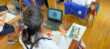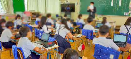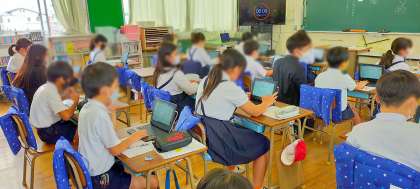 視察に来られた教育委員の方々も、タブレット端末を使いこなしている5・6年生にびっくりされていました