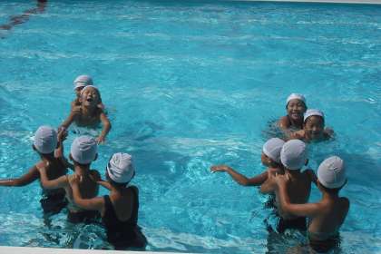 6月から始まったプール水泳が今日で終了しました。終了日の今日は1・2年生の授業がありました。