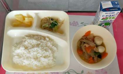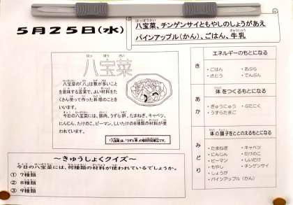 運動会の練習で疲れ気味の子どもたちを調理員さんの愛情で元気づけていただきました