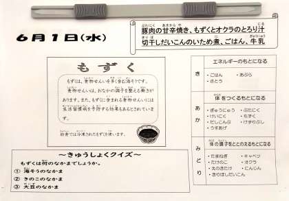 6月1日(水)の給食は