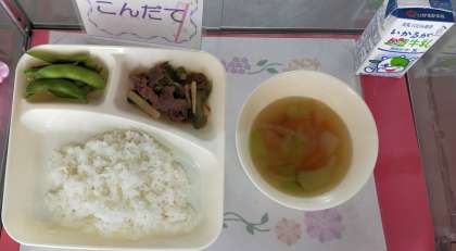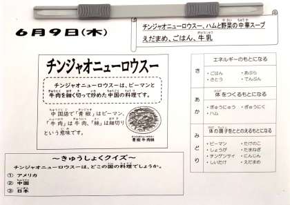 給食の放送では委員会の児童がチンジャオニューロウスーの言葉の意味についてお話してくれました