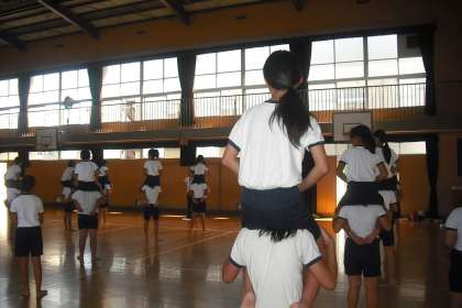 今日から全学年で運動会の練習が始まりました。低学年・中学年・高学年に分かれて、早速ダンスの振り付けを覚えたり、組体操の練習をしたりしました。