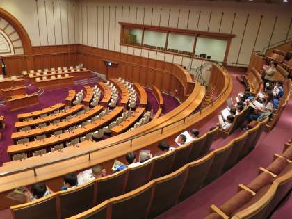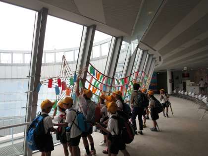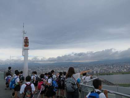 今日は、大阪市内めぐりに行きました。大阪市役所では、市会場で説明をしていただいたり、屋上にも行かせていただいたりしました。空中庭園では、教科書で出てきた有名な建物が一望でき、大喜びでした。また七夕かざりに願い事を書きました!