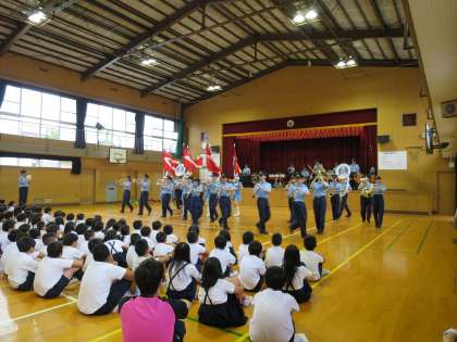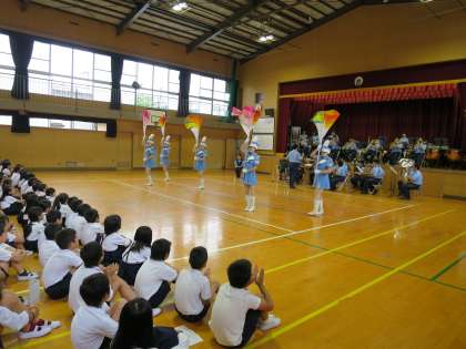土曜日に、大阪府警察音楽隊の皆様と生野警察の方をお迎えし、音楽鑑賞会と交通安全教室がありました。迫力ある演奏と素敵なフラッグの演技を見せていただきました。なじみの曲がたくさんあり、みんなリズムにのって嬉しそうに聴いていました。ありがとうございました。