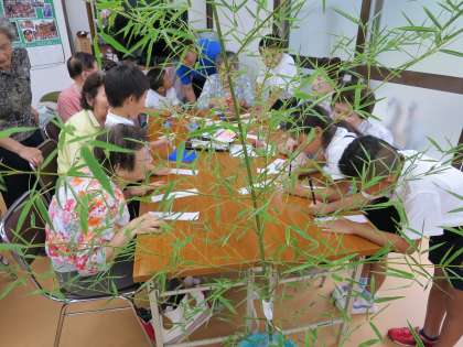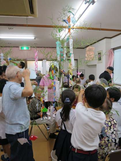 3年生は、憩いの家でおじいちゃんおばあちゃんたちと一緒に七夕飾りをつくりました。折り紙の折り方を教えていただいたり、飾り付けをしたり・・・楽しい時間を過ごしました。ありがとうございました。