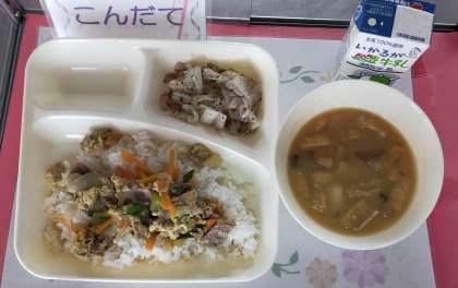 そんな季節にぴったりのみそ汁。やわらかさが程よく、しっかりと味のしみ込んだとうがんは調理員さんの匠の技
