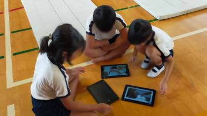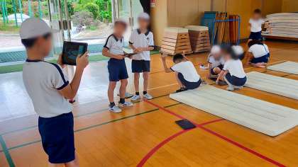 近づいてみてみると、マット運動の演技の様子を動画に撮って動きの確認をしていました