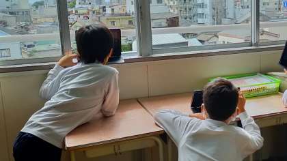 10秒ごとにシャッターを切る設定をして固定したタブレットを使って空の写真撮影